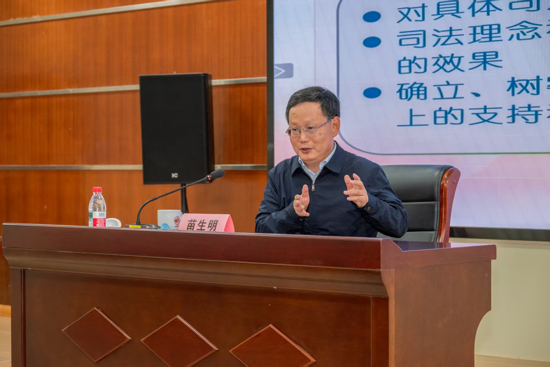 苗生明兼具深厚理論功底與豐富實務經驗,在授課中緊密結合當前國內外政治經濟發展變化背景,聚焦刑事案件頻發帶來的刑法理論與司法實踐新課題,圍繞《刑事司法基本理念問題》主題展開系統闡釋。他以典型司法案例為切入點,將抽象的刑事司法理念轉化為具體實踐指引,深入淺出解析刑事司法在事實認定、證據審查、法律適用等關鍵環節的核心要點,為在場師生搭建起從法學理論走向司法實務的橋梁。