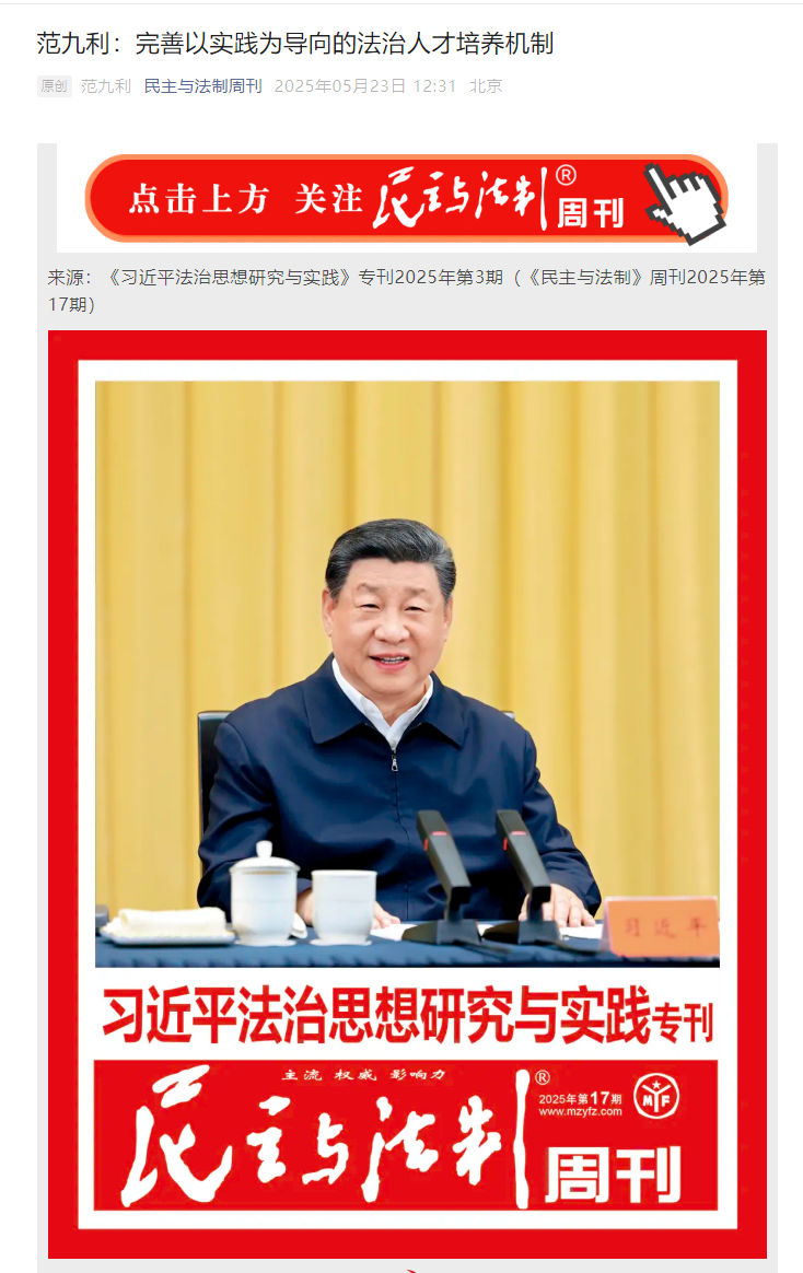 【民主與法制周刊】范九利:完善以實(shí)踐為導(dǎo)向的法治人才培養(yǎng)機(jī)制 https://mp.weixin.qq.com/s/vyGzZywAoifL5Y7-eQKeLQ