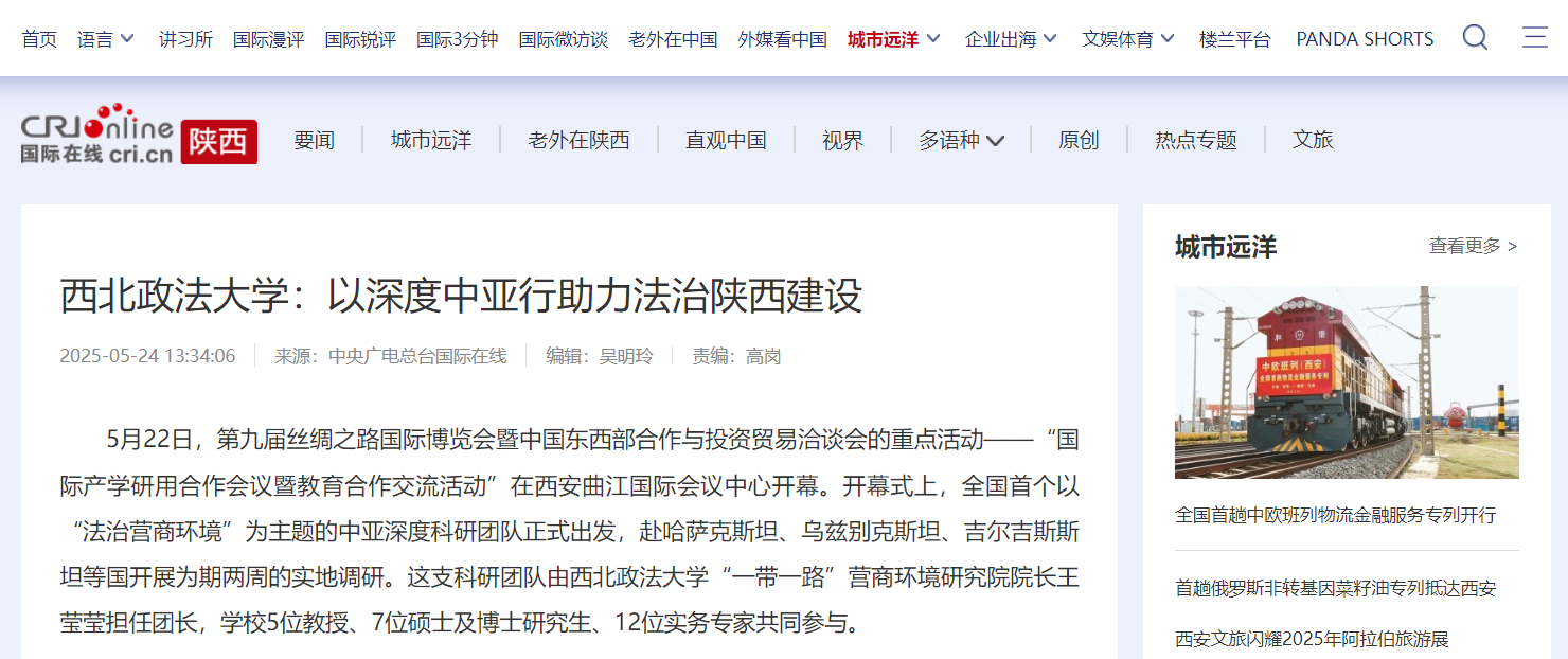 【中央廣電總臺國際在線】西北政法大學:以深度中亞行助力法治陜西建設 https://sn.cri.cn/2025-05-24/4cd184a7-1cee-2edc-d63f-5806c03758d6.html