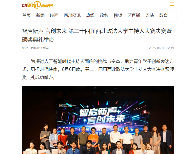 【西部網】智啟新聲 言創未來 第二十四屆西北政法大學主持人大賽決賽暨頒獎典禮舉辦http://m.cnwest.com/xian/a/2025/06/09/23132132.html