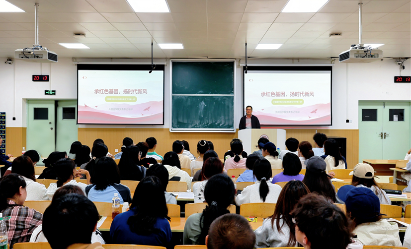 學院黨委書記楊華以“承紅色基因,揚時代新風”為題,為全體新生講授開學第一課。他詳細介紹了學校的校史校情及學院發展,要求新生們要以外語為橋梁,讓中國聲音響徹世界;以法律為堅守,讓專業能力成為報國利器;以品德為底色,讓人格光芒超越技術邏輯;以奮斗為筆墨,將青春足跡深深印刻在祖國大地;以校訓為指引,將“強國有我”融入行動自覺。