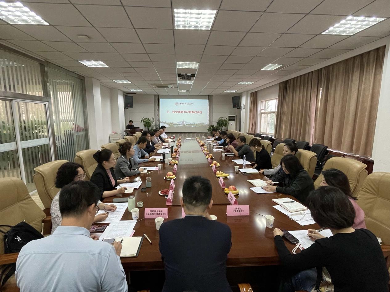 教師代表李鋒、學生代表丁盟結合主題進行了發言。國家安全學院黨委副書記劉衛波解讀了《西北政法大學第十屆民族團結進步月活動方案》。