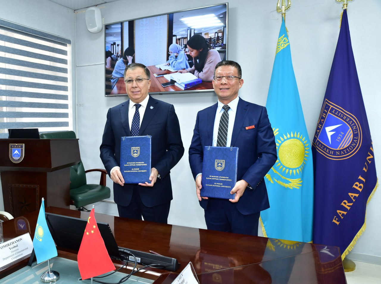 剪彩前,西北政法大學(xué)黨委書(shū)記趙萬(wàn)東與哈薩克國(guó)立大學(xué)校長(zhǎng)圖梅巴耶夫舉行合作會(huì)談,雙方就人才培養(yǎng)、教師互訪、科研合作、人文交流,尤其是中心下一步的建設(shè)深入交換了意見(jiàn),取得了諸多共識(shí),并簽署共建中國(guó)-中亞法律查明與研究中心哈薩克斯坦分中心合作協(xié)議。